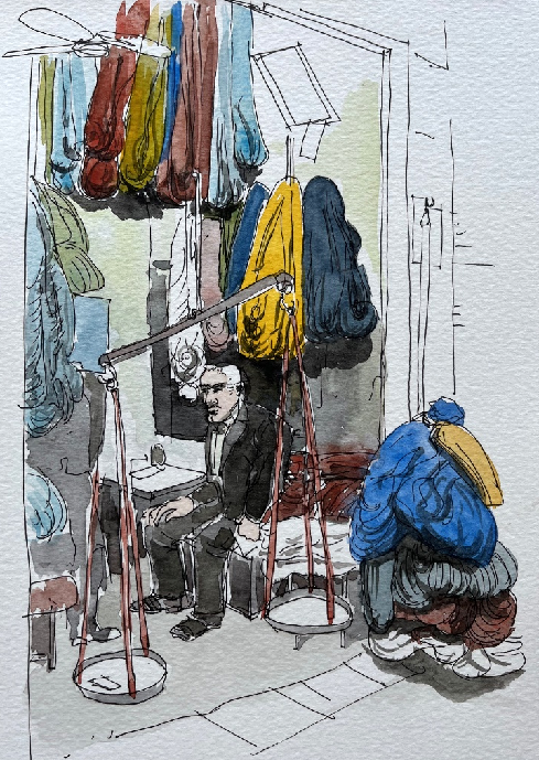 KASHAN – le marchand de laines; Dans cette ville de tisserands un vieux bazar avec ses échoppes et des tapis.